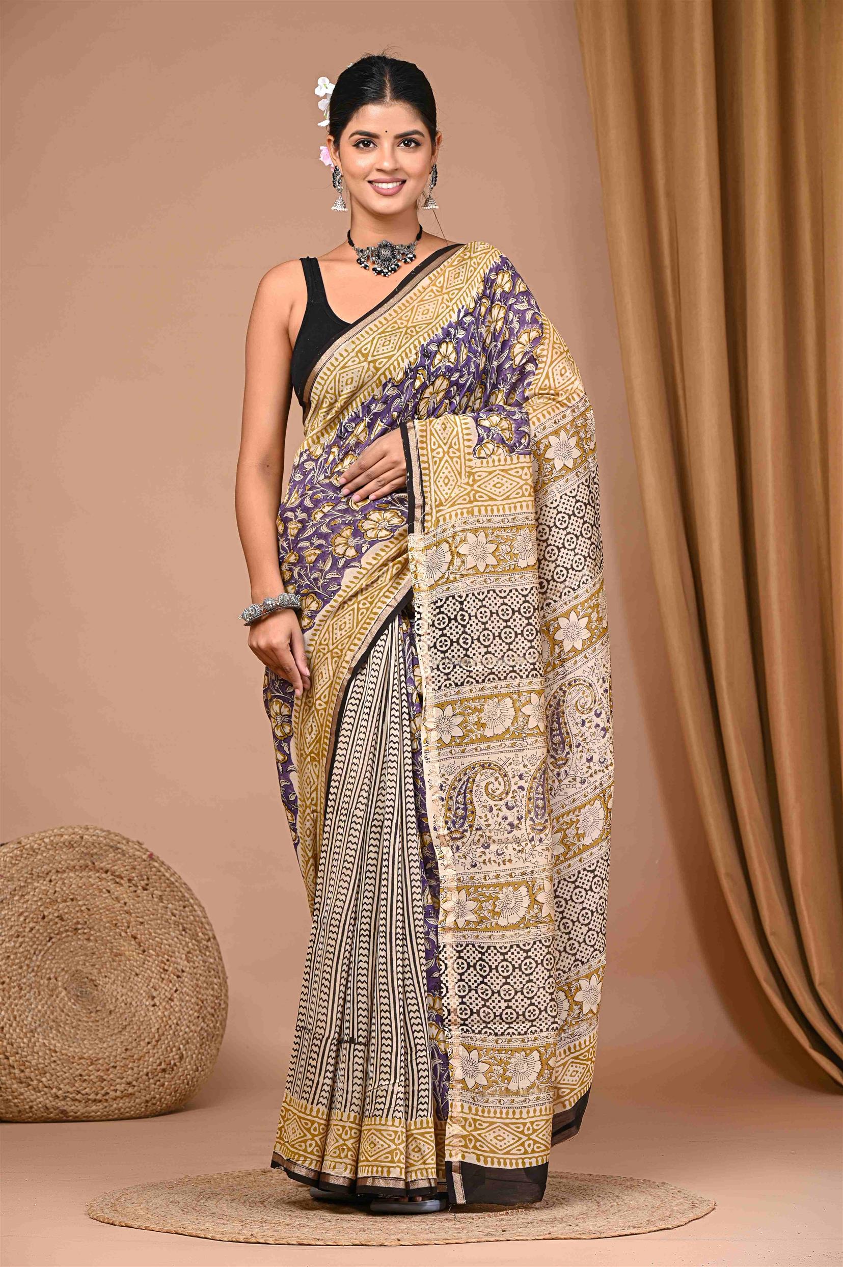 WOMENS PURPLE AND GOLD CHANDERI SILK SAREE