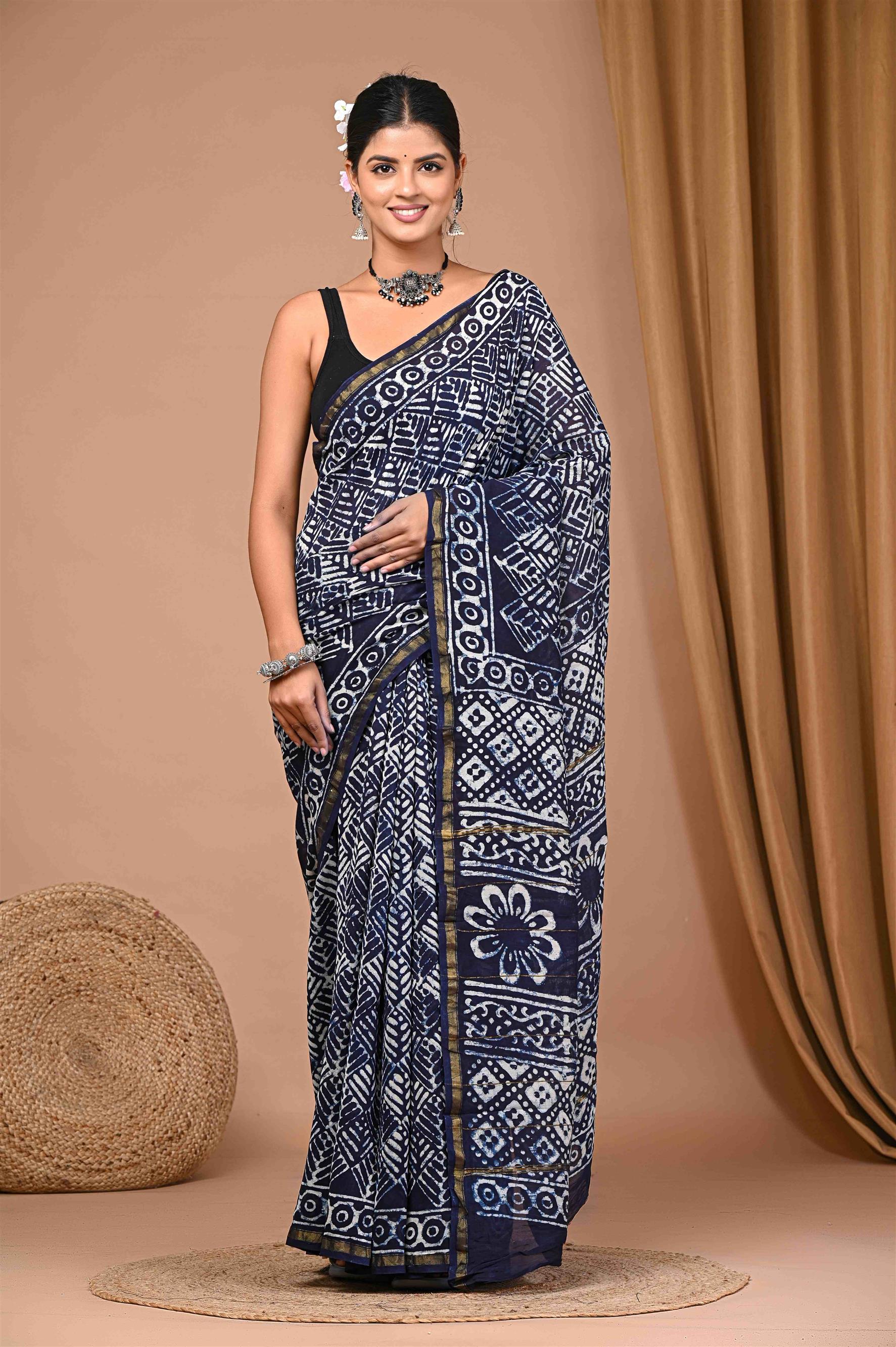 WOMENS DARK BLUE CHANDERI SILK SAREE