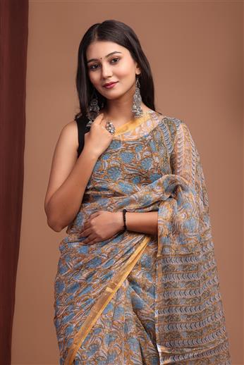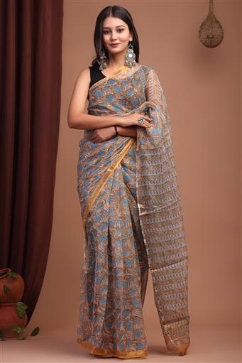 WOMENS PRIMARILY BLUE KOTA DORIYA SAREE