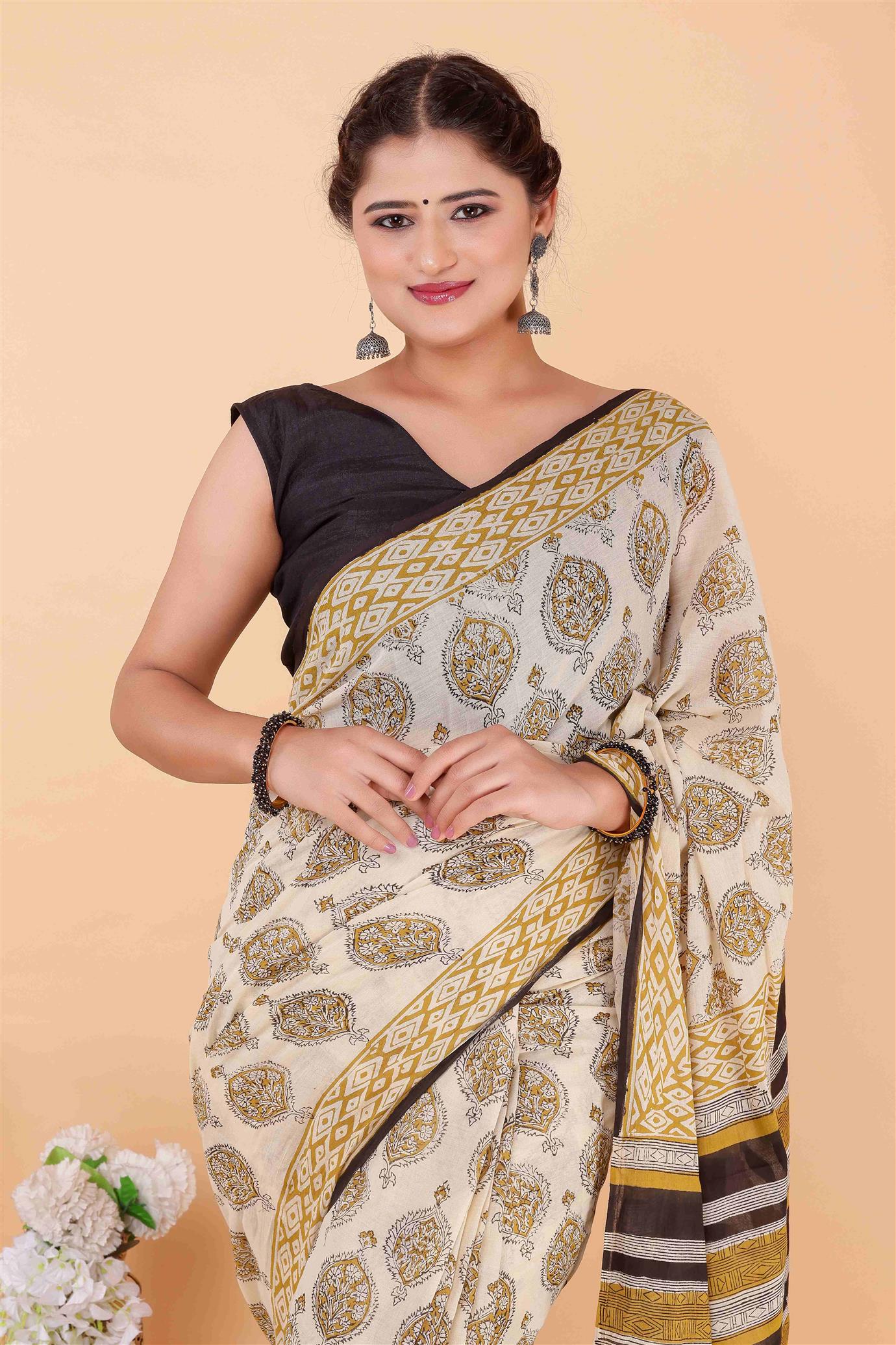 WOMENS PRIMARILY OFF WHITE COTTON SAREE