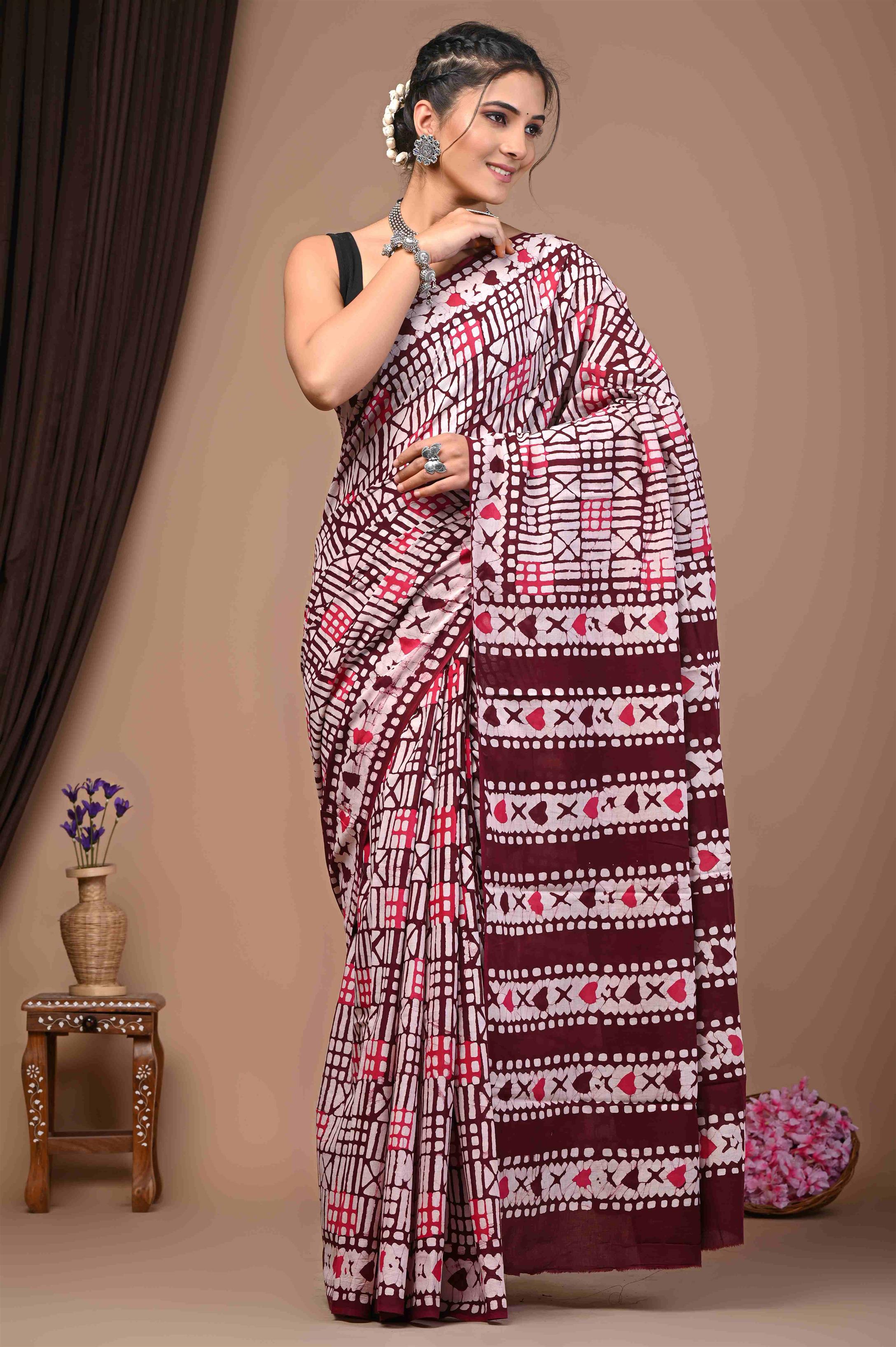 WOMENS MAROON COTTON SAREE