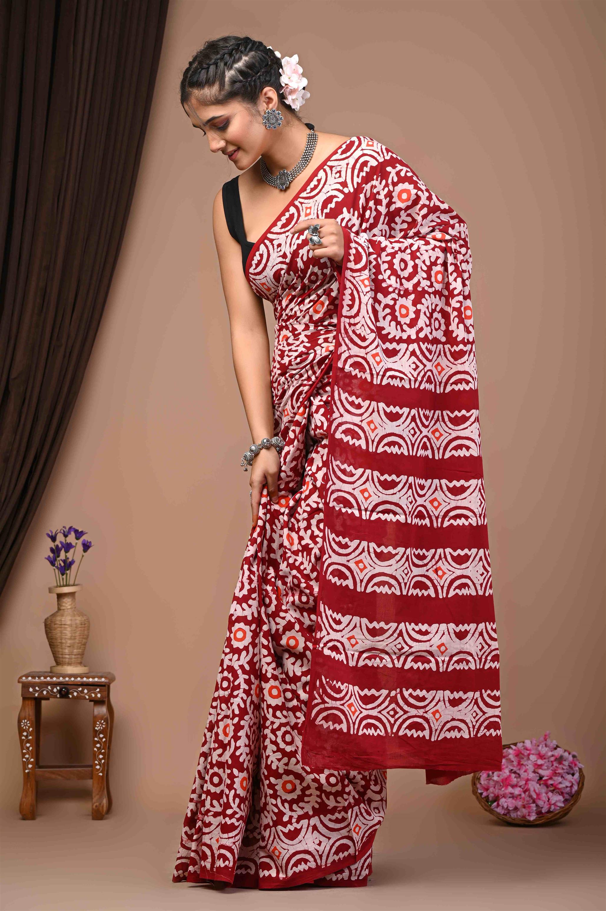 WOMENS PREDOMINANTLY RED COTTON SAREE