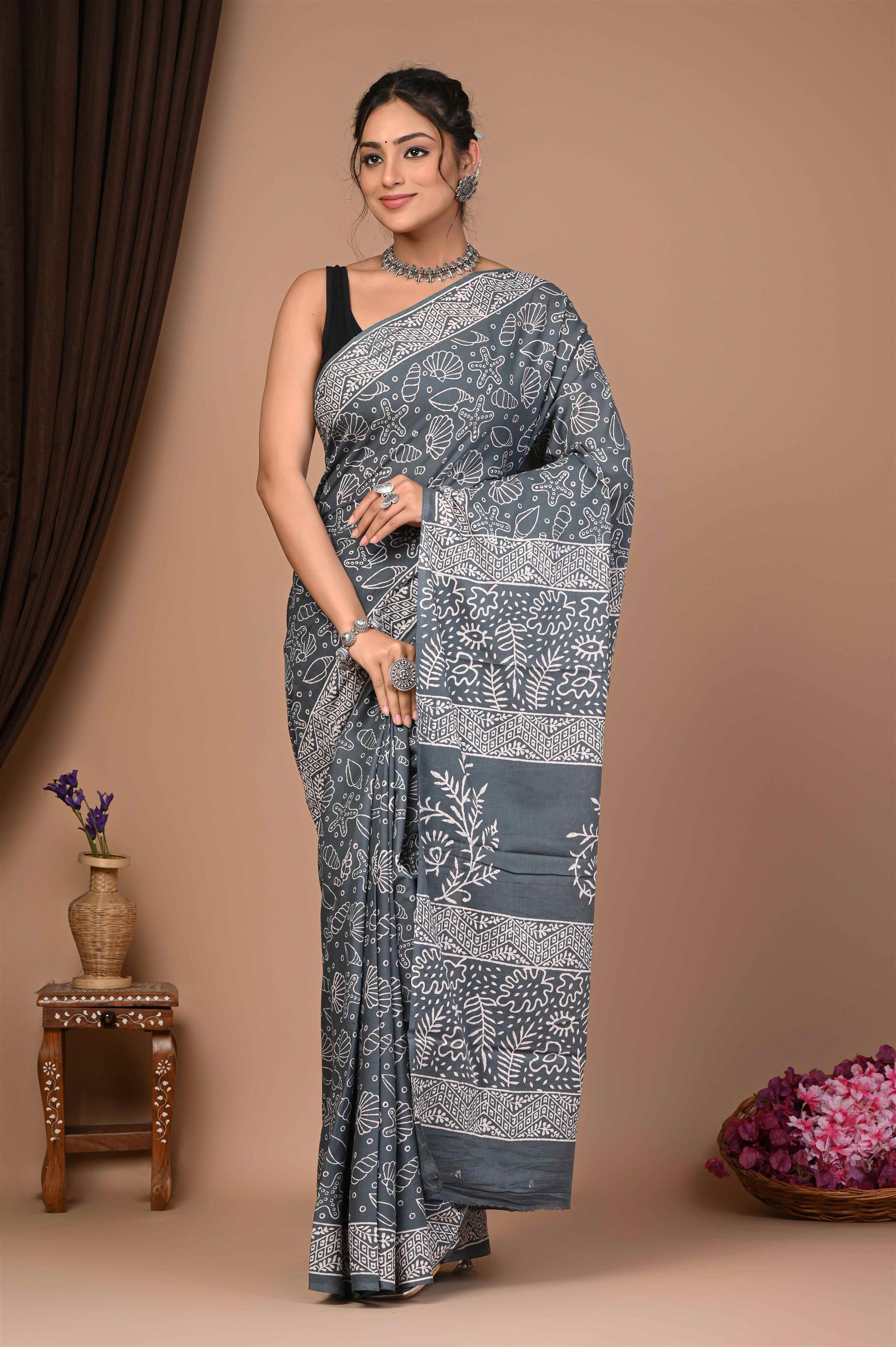 WOMENS GREY COTTON SAREE