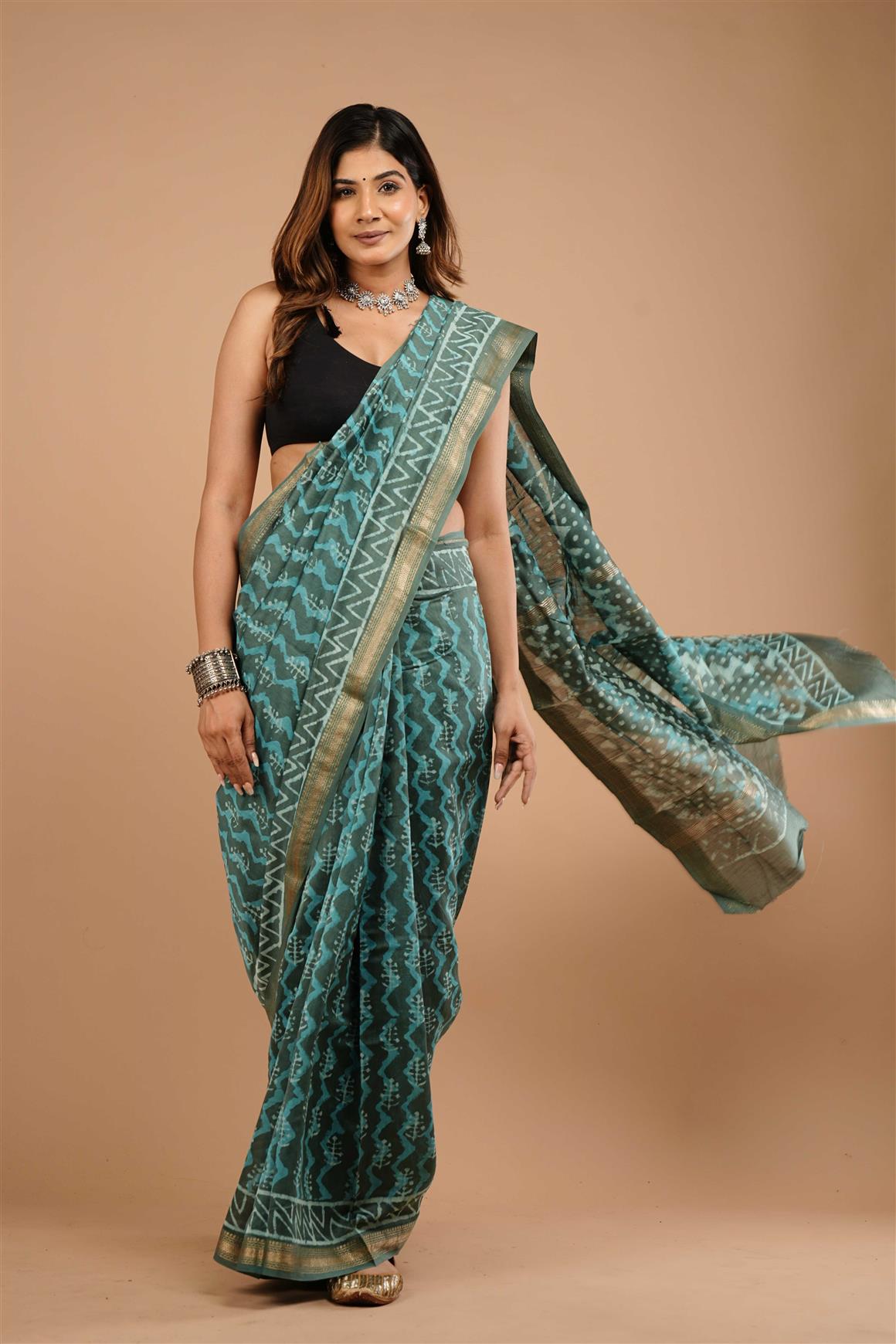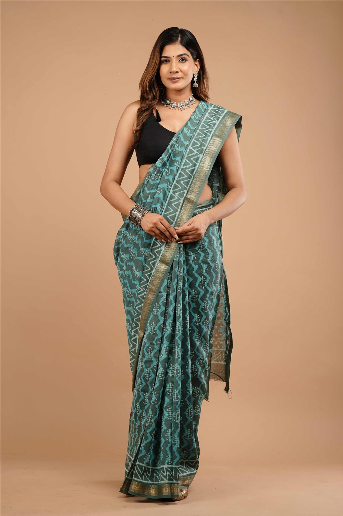 WO0MENS STUNNING TEAL GREEN MAHESHWARI SILK SAREE